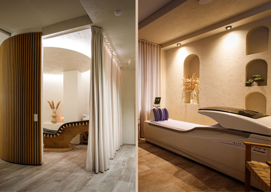 Modernios technologijos masažinis baseinas. Kiekvienoje įlankoje galėsite išmėginti oro ir vandens srovių masažą atskiroms kūno dalims.